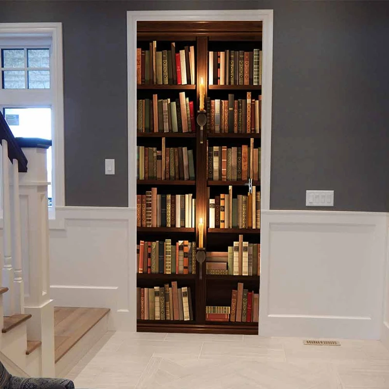 Creative 3D Door Sticker Wall Library Wall Mural Waterproof Self Adhesive Diy Poster Removable Door
