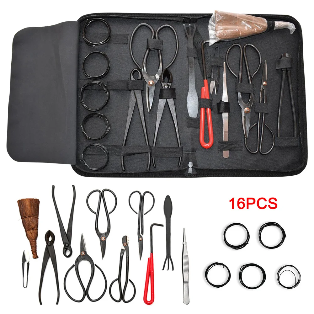 Hot 16Pcs Garden Bonsai Tool Set Carbon Steel Kit Cutter Scissors with Nylon Case D6